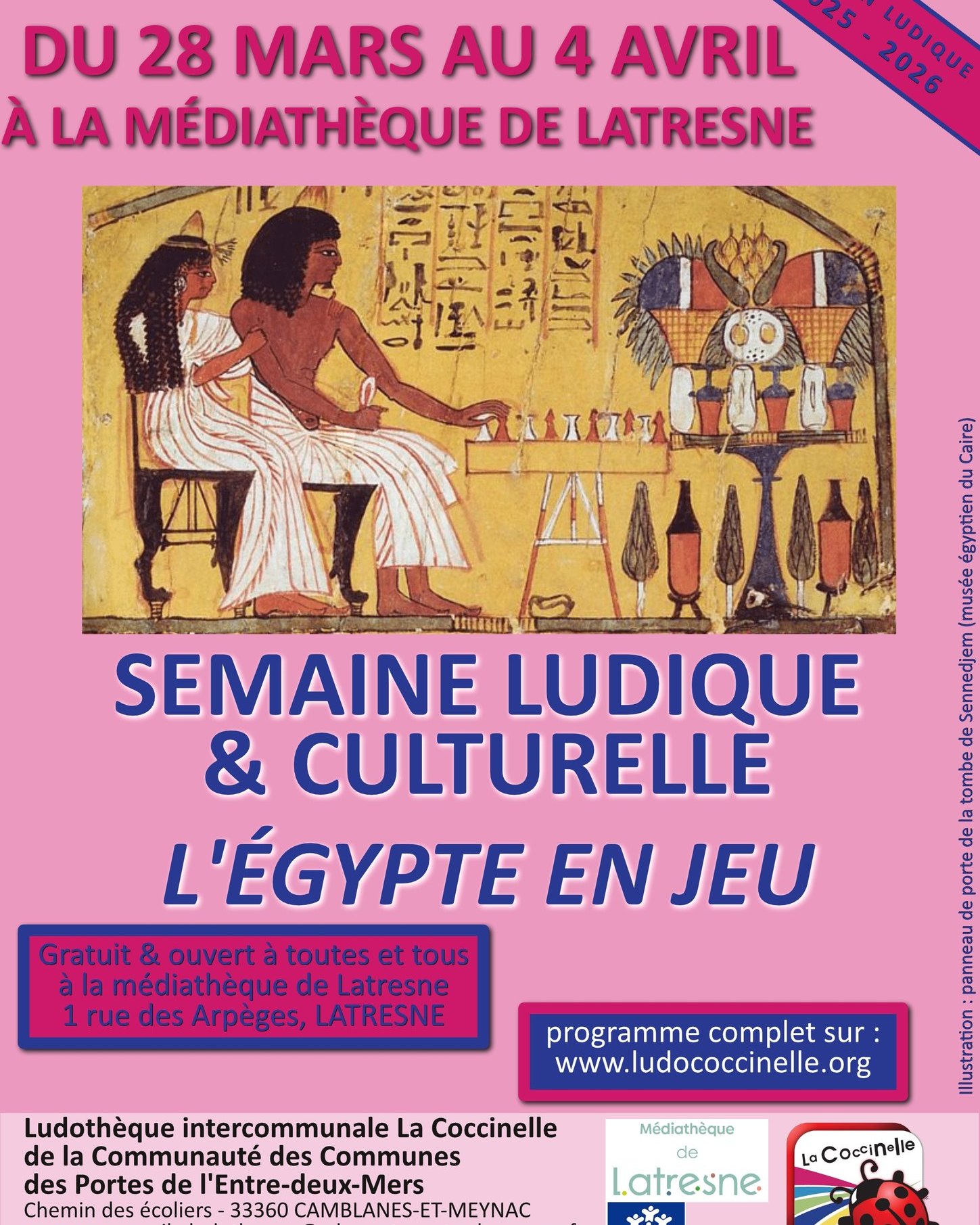 À l’occasion de la 16ème édition de la semaine ludique & culturelle, la Ludothèque vous convie à la découverte de l’Égypte en [...]