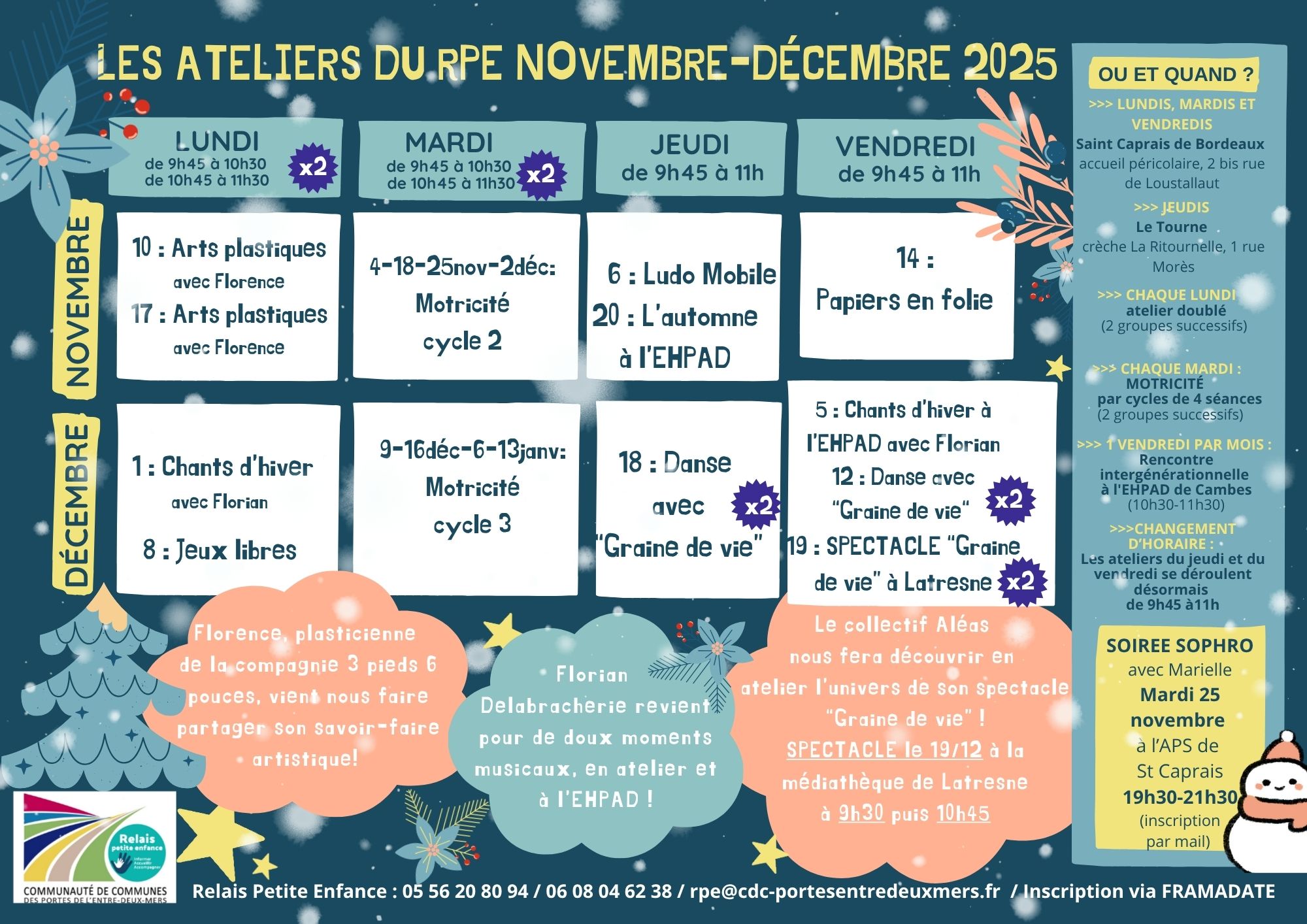 Téléchargez le programme des ateliers du RPE proposés aux assistant.e.s maternel.le.s de novembre à décembre 2025